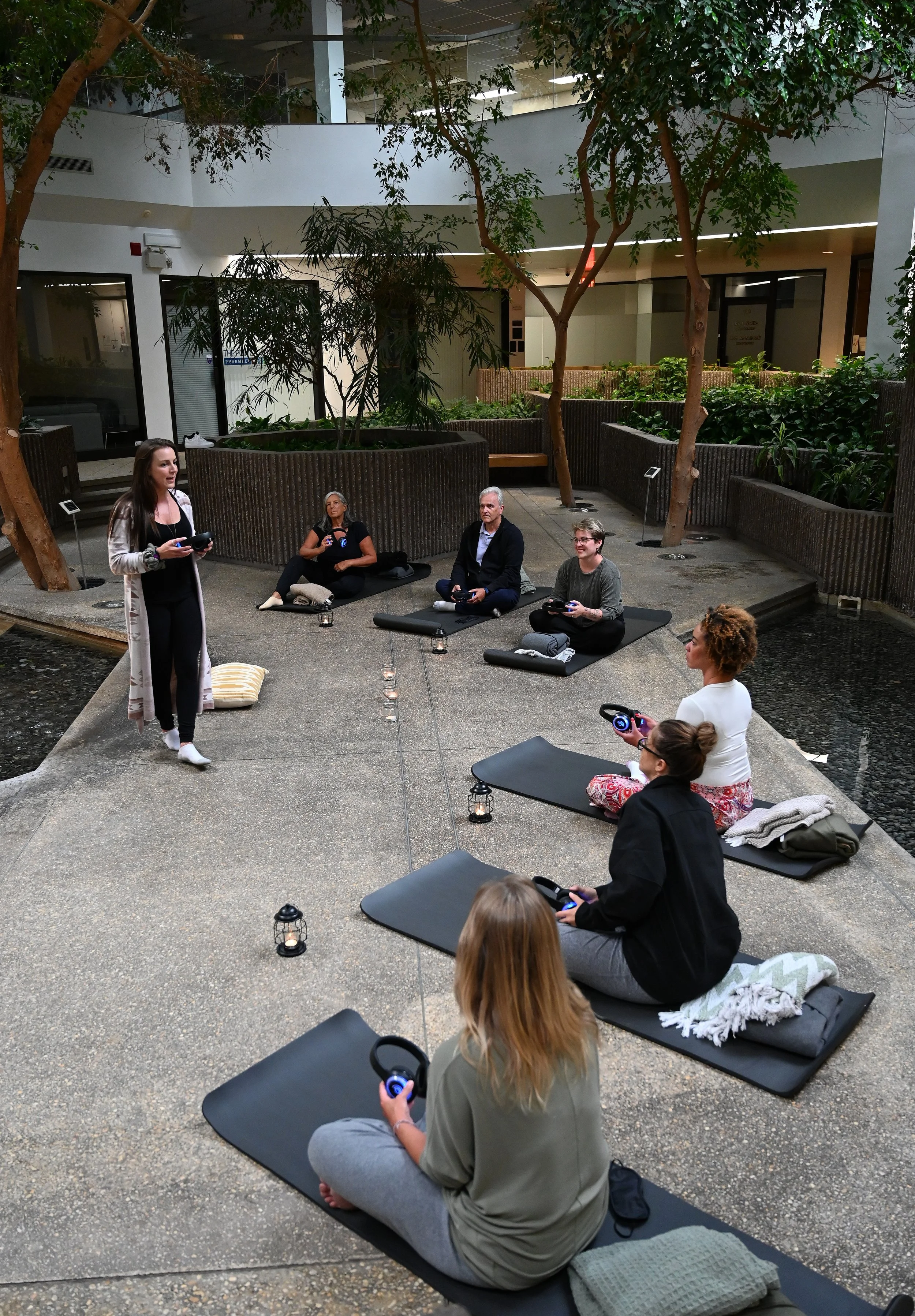 Perfect if you’re trying 9D for the first time, want to meet new people, or bring a wellness experience to your workplace, retreat, or existing large group.